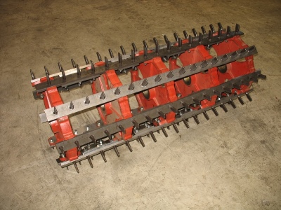کوبنده انگشتی دار:در این کوبنده ها انگشتی های فولادی در یک یا دو ردیف بر روی تسمه های فولادی نصب می گردند و این تسمه ها بر محیط خارجی بشقاب ها پیچ می شوند.بشقاب ها بر روی شفت محرکی که روی دو تا بلبرینگ قرار می گیرد مونتاژمی گردند.ضد کوبنده نیز از نوع انگشتی دار است.وضعیت قرار گیری کوبنده و ضد کوبنده به ترتیبی است که انگشتی ها کوبنده در ضمن چرخش، از وسط انگشتی های ضد کوبنده عبور می کنند و بدین ترتیب ضمن وارد آوردن ضربه های سریع بر روی خوشه ها ، محصول را شانه نیز می کنند.